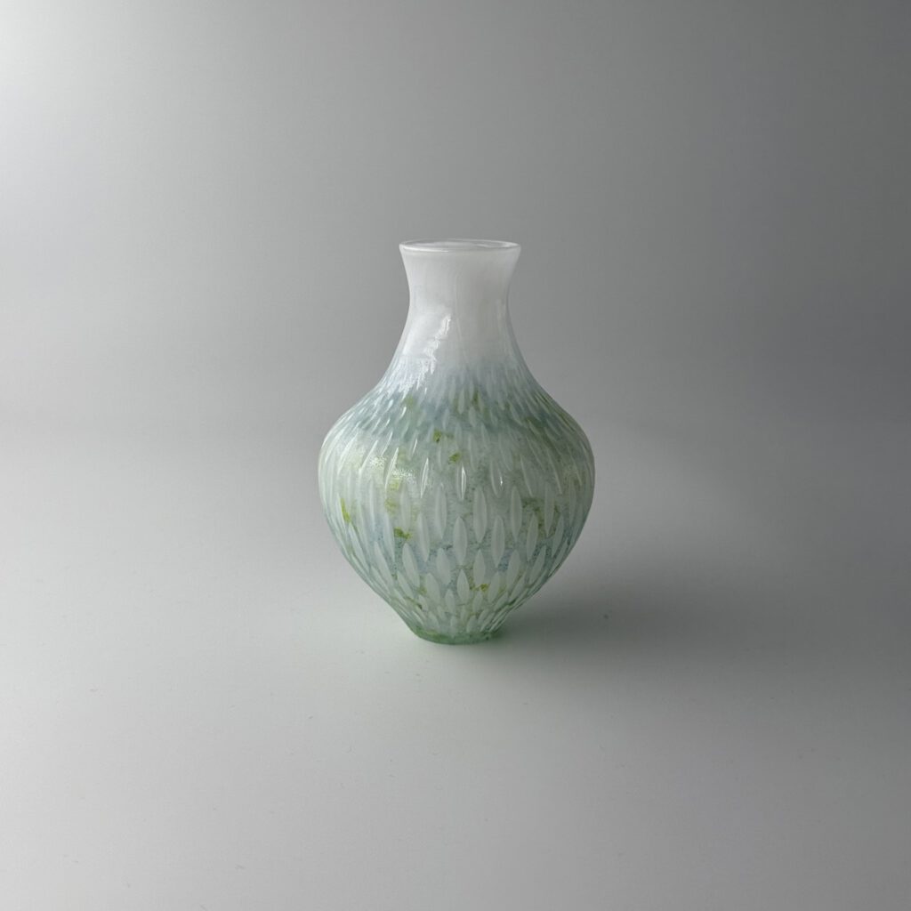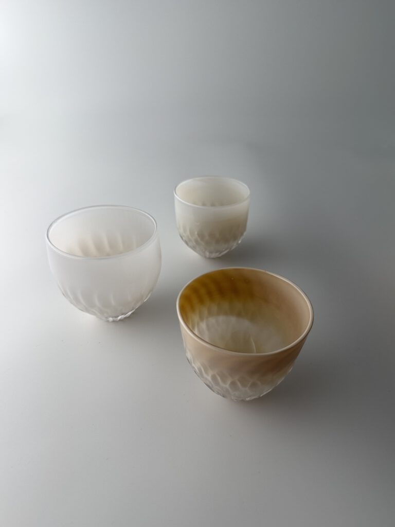 Flüssiges Glas wird um eine Pfeife gewickelt und mit meinem Atem geformt. Die weitere Bearbeitung erfolgt bewusst minimal und mit speziellen Werkzeugen. Die Form entsteht im Dialog mit dem Material – ohne Zwang, ohne Korrektur.
